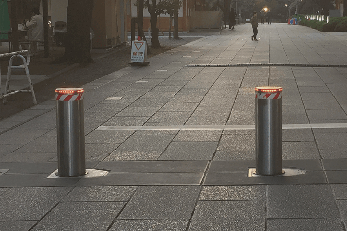車両の侵入を阻止する「自動ボラード」