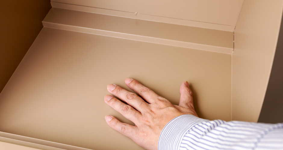 盗難対策で特にこだわった点は、「本体の堅牢性」と「多重の防犯対策」による高い安全性です。まず本体の素材には、長期間ご愛用いただけるよう厚み0.8mmの鋼板を採用し、堅牢性を大きく高めました。厚みを0.8mmにすることで本体重量も増し、持ち去りや破壊といった盗難リスクの低減にもつながっています。
